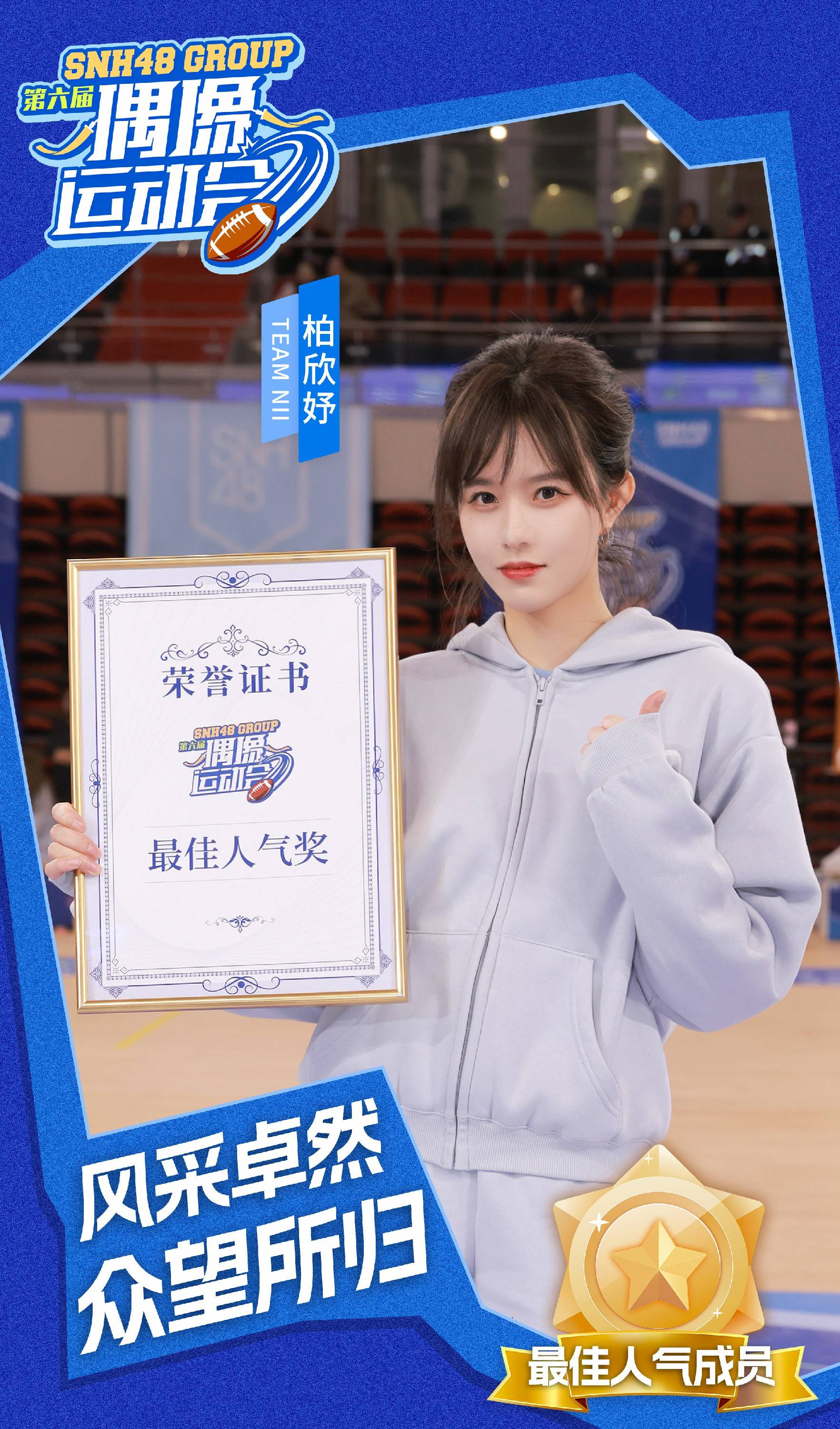 最终,通过6个项目的累计积分核算,GNZ48 TEAM Z以总积分67分的优异成绩,收获了SNH48 GROUP第六届偶像运动会的团体总冠军。本届运动会还新增了人气队伍奖赏机制,由现场观赛的观众通过自己手中的票根为支持的成员应援,最终柏欣妤收获最佳人气奖, SNH联队收获最佳人气队伍。在赛后采访中成员们表示,所有观众的支持与呼声,都是她们前进的动力。