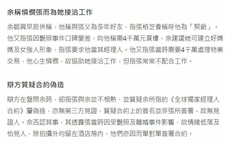 据了解,张柏芝与前经纪人余毓兴之间的经济纠纷,并非如余毓兴所控告的张柏芝“未履行电影合约并违反经理人合约”。余毓兴曾以自己病重患癌为由博取同情,张柏芝出于信任与善意,不仅未追究其涉嫌合约造假的行为,甚至选择原谅而未报警处理。如今却发现,这份宽容反而成为对方诉讼的筹码,令她深感被背叛与伤害。