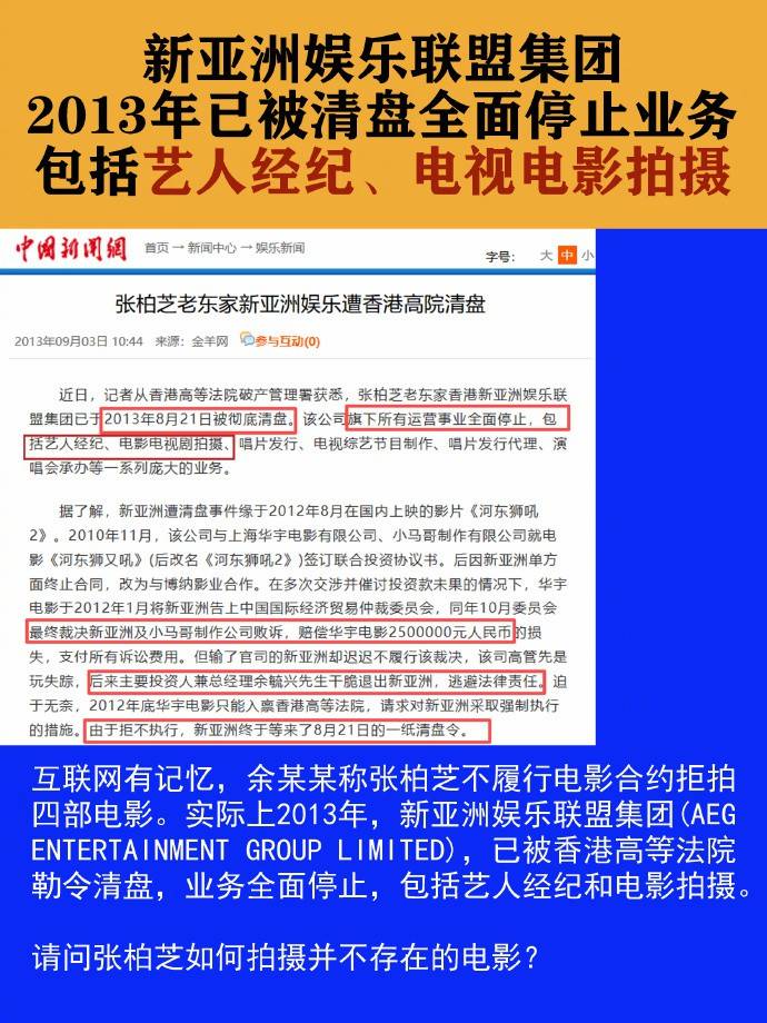 余毓兴在控告张柏芝之前,经营的公司早已经清盘,并卷走了上千万的资金跑路,有多位圈内人士指责余毓兴谎话连篇,欠债累累。