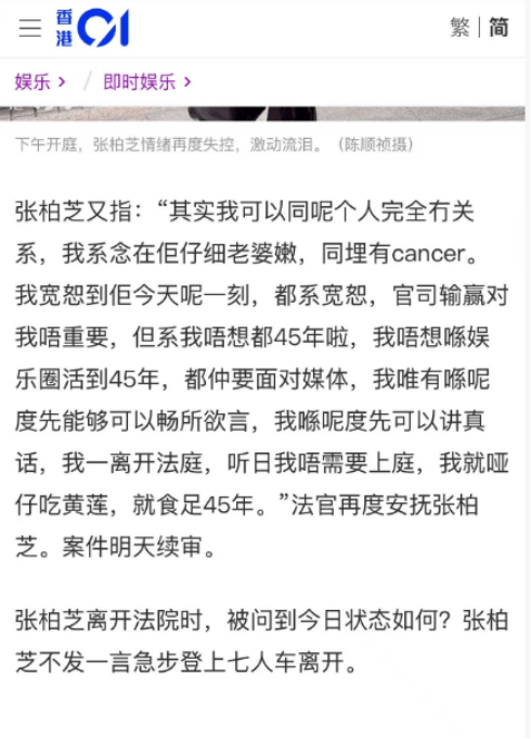 今天,张柏芝在庭审中落泪,说出一句“一切都是假的”。