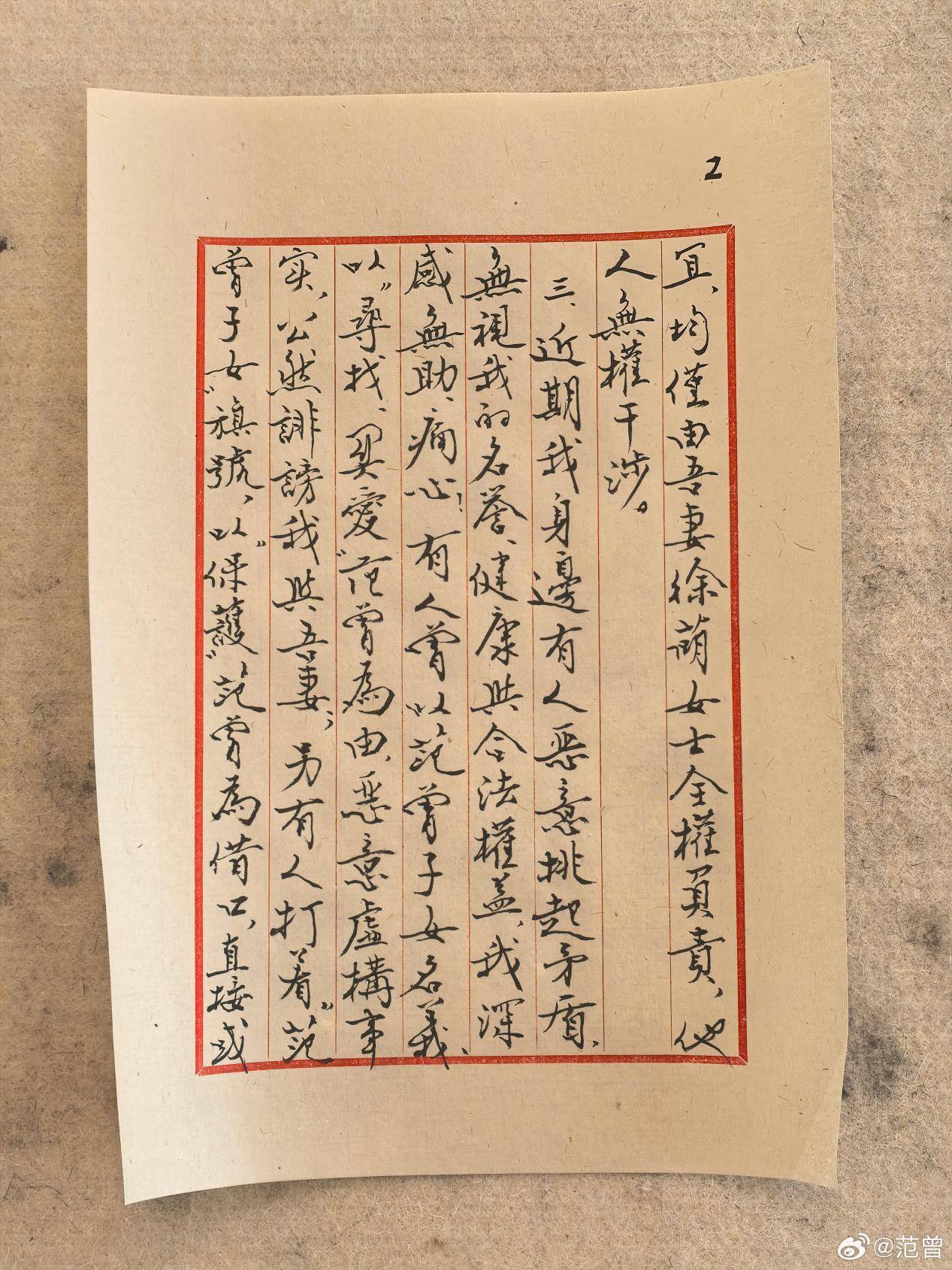 同日范曾先生也于某社交平台开通个人账号,以亲笔手写信形式向网友分享家庭近况,宣布夫妻二人近期喜得爱子的好消息。此前因专注于照顾产育事宜,未及时对外公开消息,导致出现了一些不实传闻,范曾先生特此说明,若网络上有自称其子女名义进行诋毁或欺诈的行为,均属虚假和诈骗内容,谨防上当受骗。并表示日后其个人事务均交由夫人徐萌女士妥善处理。